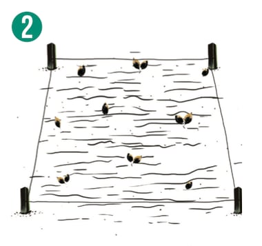 - Determine las camas usando cuatro estacas, una por cada esquina y entre sí con un cordón.