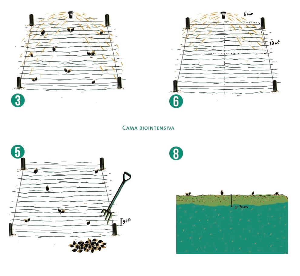 Si la cama no se utilizará en el momento que ha sido elaborada, se sugiere regarla y cubrirla para mantenerla húmeda y justo antes de sembrar incorporar la capa de composta.
