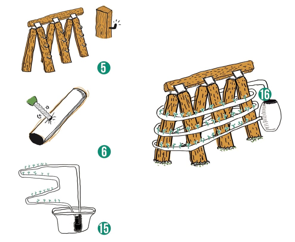 - Ponga los tubos de PVC en las perchas.