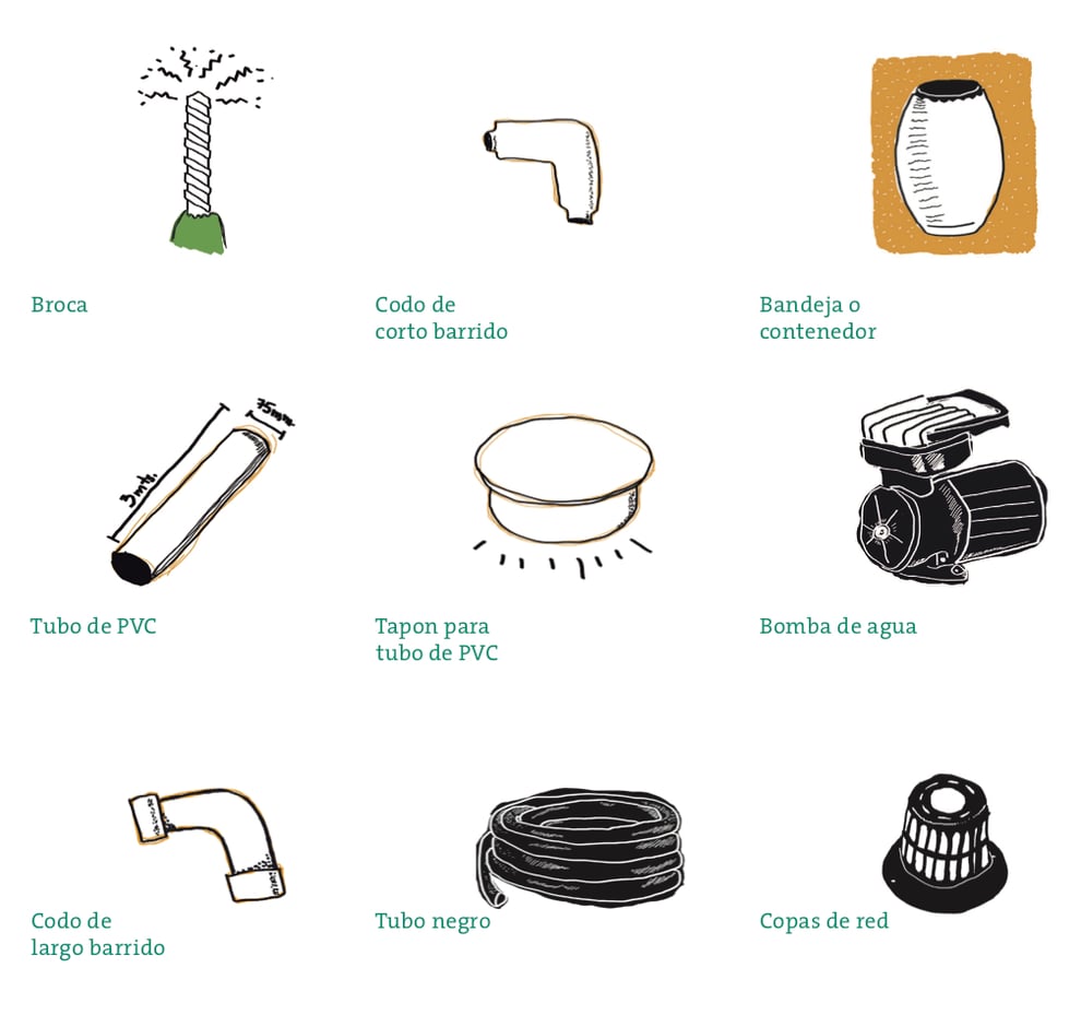 - 1 broca de 1.5 pulgadas. Asegurarse que sea capaz de atravesar el PVC.